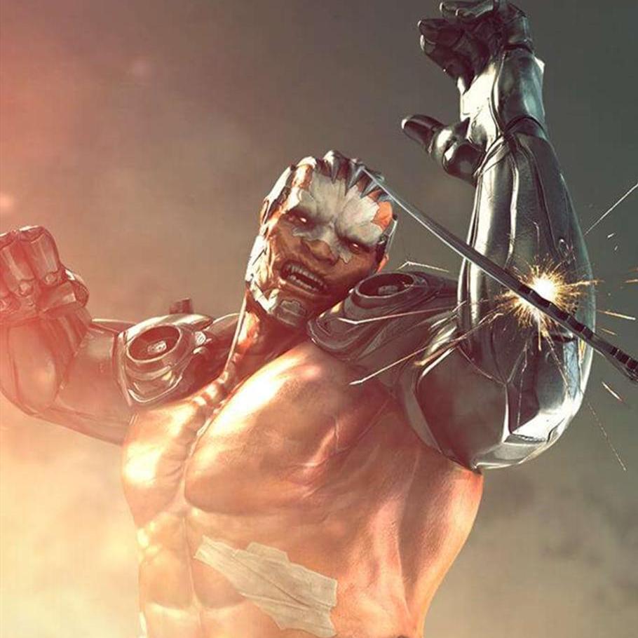 硝烟之中出现了一个强壮的身影——合金钢铁制成的双臂,拥有人类形态的强壮躯体,鲜红的肌肤和讥笑般的表情!