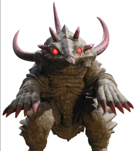 是萨克基诺星人小香使用超能力、用土制造的四足步行的怪兽。被小香的超能力操纵,开始大闹。构成身体的物质大半是矿物粒子,没有生命反应,不能说是「怪兽」。武器是头部尖端不断前后移动的钻头状的角和像鳍一样的巨大前足。最初出现时用前足在地下挖土前进,受到了GUYS攻击而钻地逃跑了。