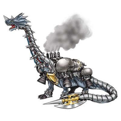 陆上最大级,最重量的半机械型数码兽。腕龙兽被施给改造而机械化了的姿态。
