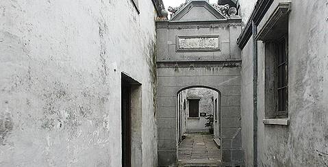 进门是一条长甬道,具有上海里弄的风格,在中间有一座西洋门楼,上面有“鹧溪小隐”四个字。在西洋门楼的上面有几个像金蟾的动物,据说这是刘家做生丝生意的商标。