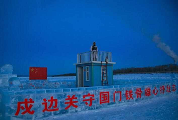2014年12月30日,驻黑龙江“黑河好八连”官兵冒着-30℃的严寒在界江哨位上站岗执勤。临近元旦,他们在界江上堆砌了“国旗台”、“中国版图”等冰墙来装点哨位,迎接2015年新年的到来,同时也以此向祖国和人民展示了自己守好祖国北大门的坚定信心。2015年1月15日,黑龙江黑河,“黑河好八连”哨兵辛国强和薛颜俊冒着零下28度低温,在中俄边境线上进行10公里徒步巡逻潜伏执勤任务,为祖国母亲戍守好祖国北大门。