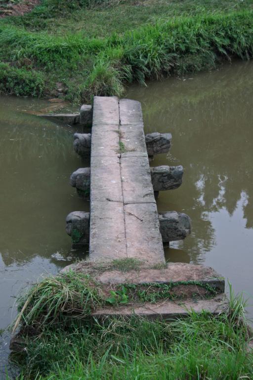 玉带桥,桥残长7.87米,桥面宽0.87米。桥中部的3个桥墩上各有圆雕龙1条。龙雕精美,造型生动别致。[1]