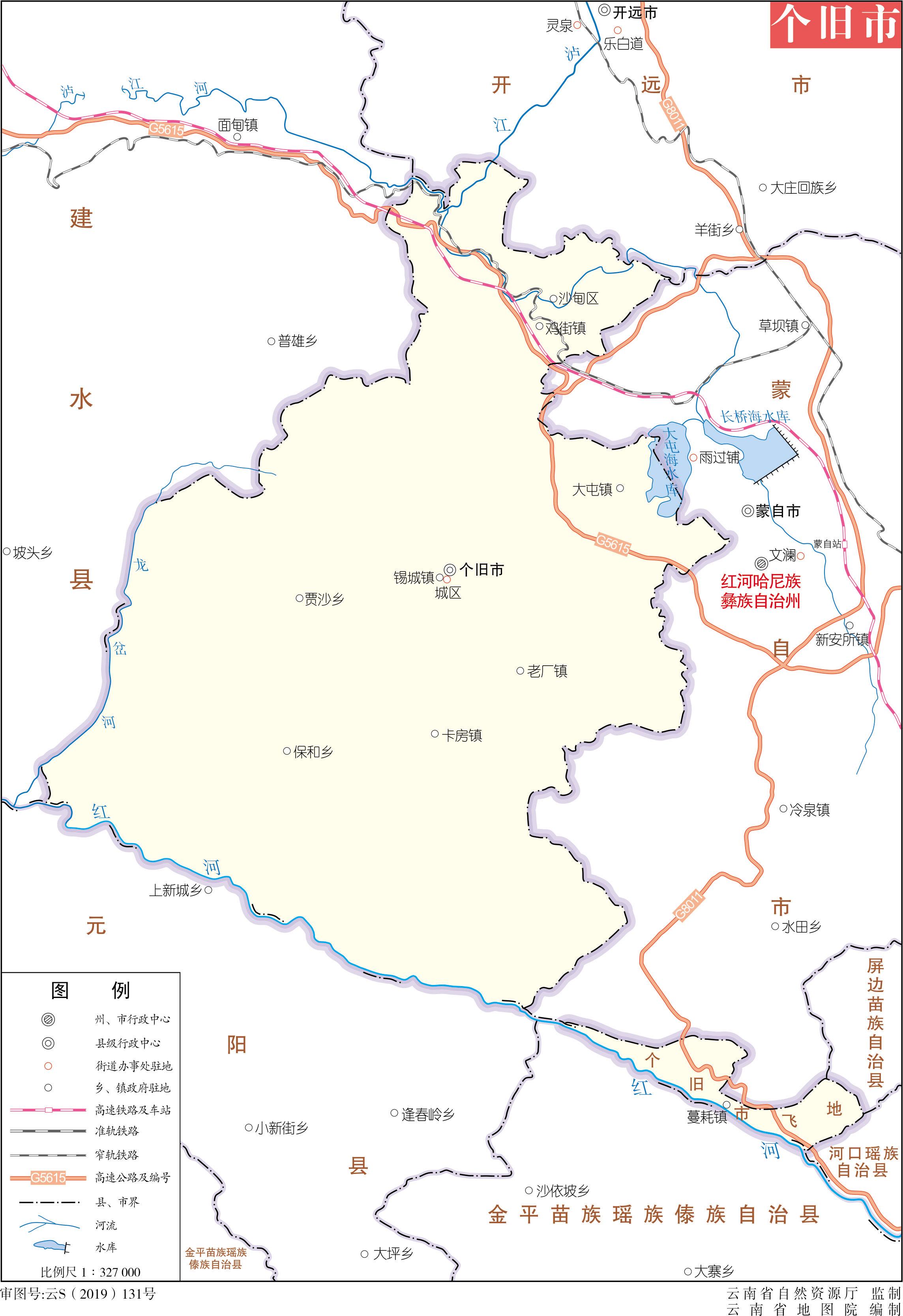 1958年10月20日国务院全体会议第81次会议决定:撤销蒙自县,将原蒙自县全部地区划归个旧市。撤销开远县,将原开远县的六区全部和七区的4个乡、五区的1个乡划归文山县,其余地区划归个旧市。