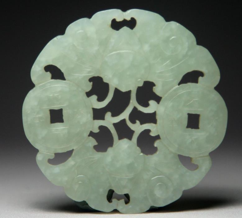 中国传统吉祥图案。由蝙蝠和古钱构成纹图。画面上蝙蝠前面摆有古钱。“蝠”与“福”同音;“前”与“钱”谐音;孔寓眼,意即眼前。