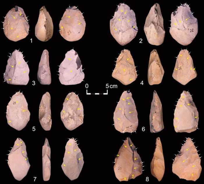 这种工具两面打制,一端较尖较薄,另一端略宽略厚,呈泪滴等形状,由于它左右两边和正反两面基本对称,由此被公认为人类历史上第一种标准化加工的重型工具,它代表了古人类进化在直立人时期石器加工制作的最高技术境界。