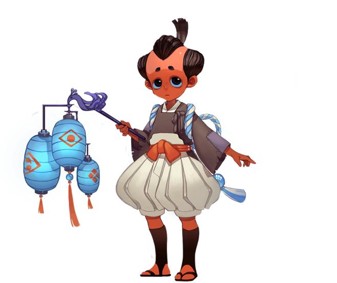 传说中的提灯小僧有两种形态,主要是“赤颜提灯”的男童,另一种以“人灯一体”的形象出现,也就是“头即为灯”,类似西方的南瓜头怪物。