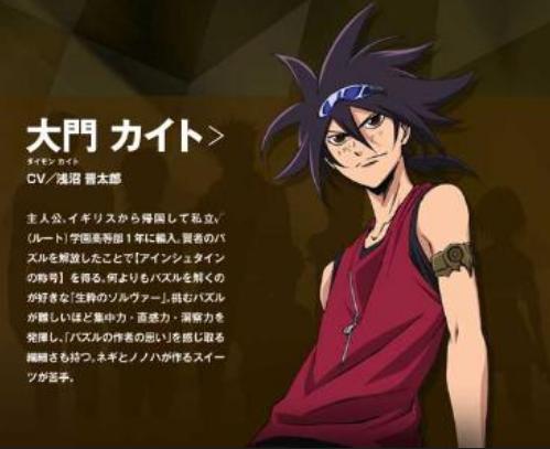 主人公,英国留学归国(毕业于号称专门培养天才的cross-field学院),现就读于私立√学园高等部1年级。挑战并解开了一个「贤者の谜」,于是缔结下「俄尔普斯(orpheus)之约」(非自愿),左臂带着的俄尔普斯之臂环就是解谜缔结契约的后得到的「财」。擅长解谜题,有很好的感知力和洞察力。父母(大门彭,大门静)双亡,但实际上这两人并不是界人的亲生父母而是POG的giver(出题者),在被交给这两人之前界人的记录荡然无存,但这两人是真正的爱着界人所以他们背叛了伯爵,为了保护界人死于愚者之谜中,此事由养父解道巴伦(为√学园的校长,同时也是POG的人)在的17集告知;现与井藤野乃叶等人一同解由POG(制造出「贤者の谜」并对其进行管理的智力集团)出题人设下关于「财」的「贤者の谜」,以及为提升解谜者能力而设的「愚者の谜」。POG的最终目的是寻找有能力解开「神之谜题」的人。23集时俄尔普斯之臂环破裂,但仍有拥有臂环时的思考能力。