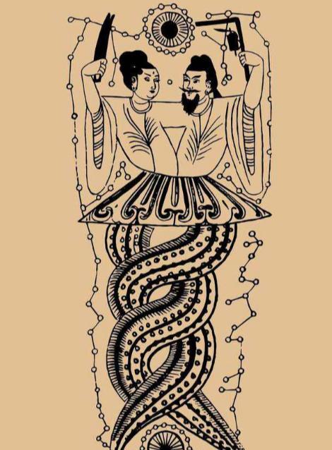 前不久,中央媒体及全国百家晚报记者云集甘肃省天水市,采访公祭中华人文始祖伏羲大典活动。关于伏羲与女娲历来有不少优美的传说,也有大量的古文记载,是人是神并无确切的界定,现代考古发掘确认伏羲与女娲是中华人文始祖,当然是值得隆重庆典的了。华夏文明有文字记载的自“三皇”“五帝”始。“三皇”即天皇、人皇、地皇。据《绎史》引《尚书大传》记载:“燧人为燧皇,伏羲为羲皇,神农为农皇。燧人以火纪。火,太阳也。阳尊,故托燧皇于天。[2]”三皇之中,燧人记载较少,主要事迹为钻木取火,教人熟食。据《韩非子·五蠹》记载:“上古之世,……民食果蔬蚌蛤,腥臊恶臭,而伤腹胃,民多疾病。有圣人作,钻燧取火以他腥臊,而民悦之,使王天下,号之曰燧人氏。”地皇神农氏纪载较多,神农尝百草,神农教农耕,神农作琴…,等等,第第,不及一一述说,但其事迹大都接近民生自然,并无十分神奇之说,伏羲与女娲的记载就尤为彰显了。伏羲制卦,造书契,定嫁娶,猎兽罟鱼,定节气,作乐曲这些都是人力可为之功绩,然而其妻女娲抟土造人,炼石补天,却又是近乎神异了。